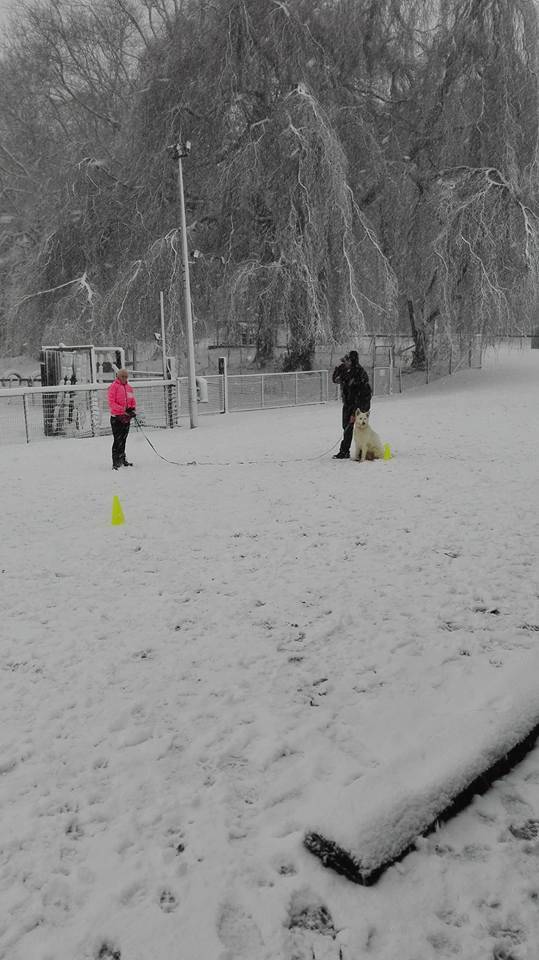 Op onze hondenschool doen wij er alles aan om de lessen altijd te laten doorgaan ; of het nu sneeuwt of regent.